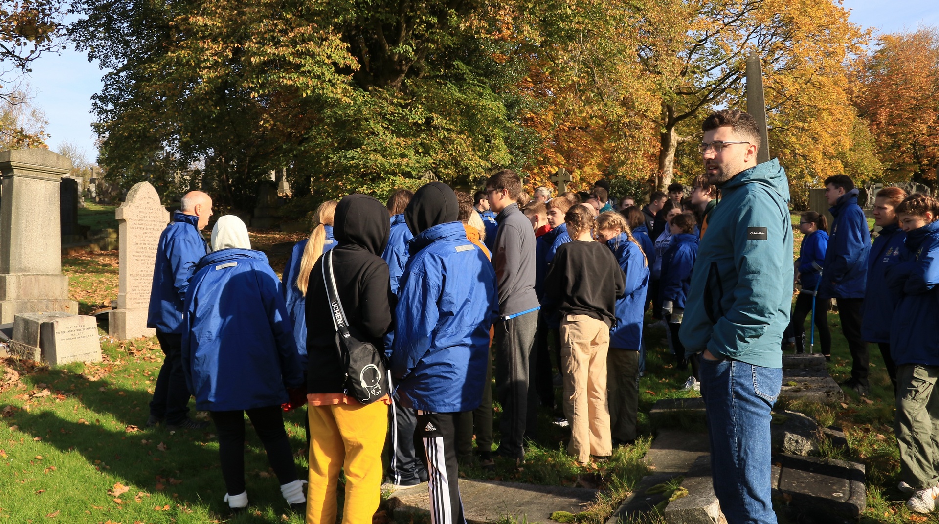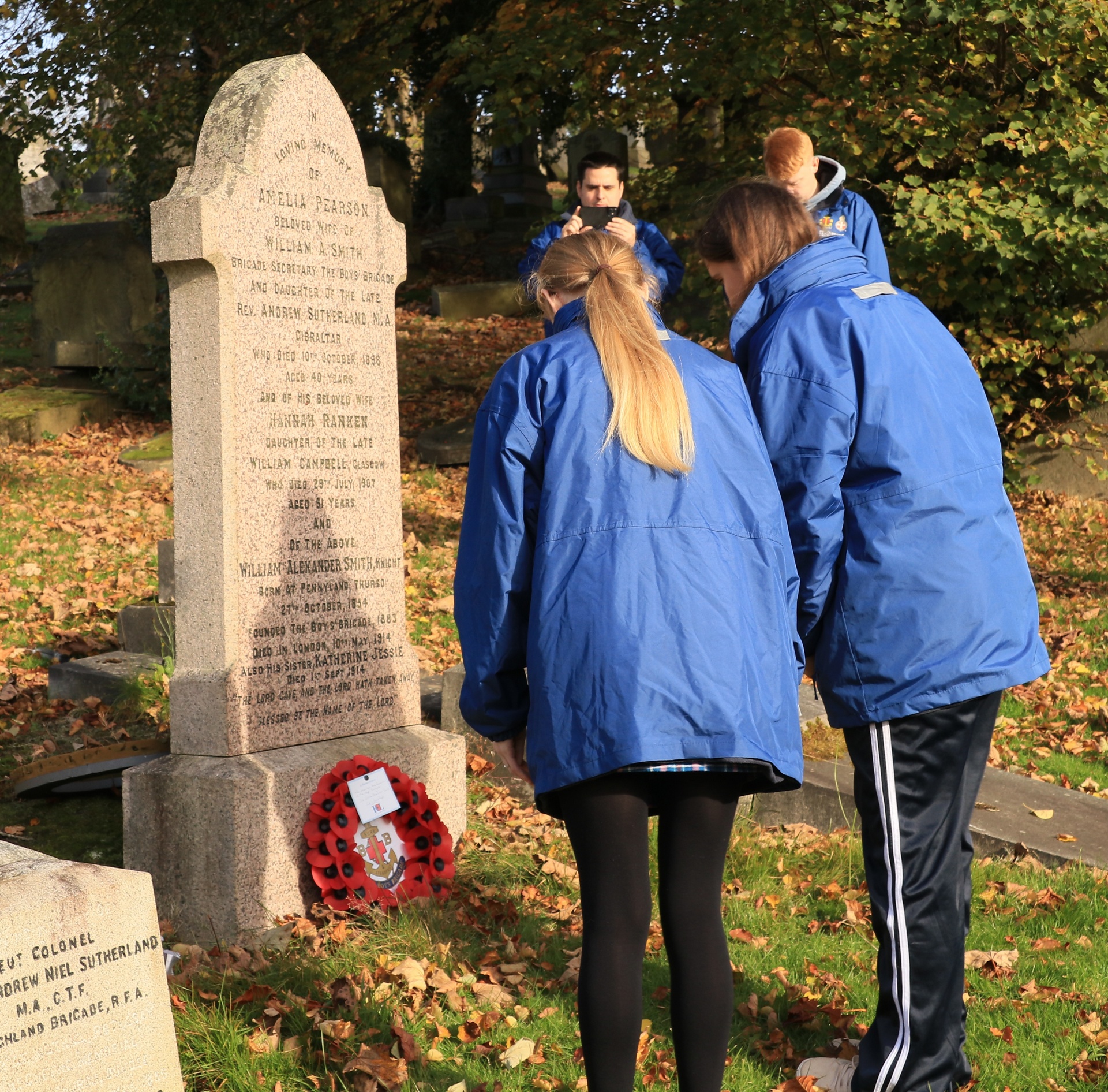 Pictures of the group at the grave of the Founder