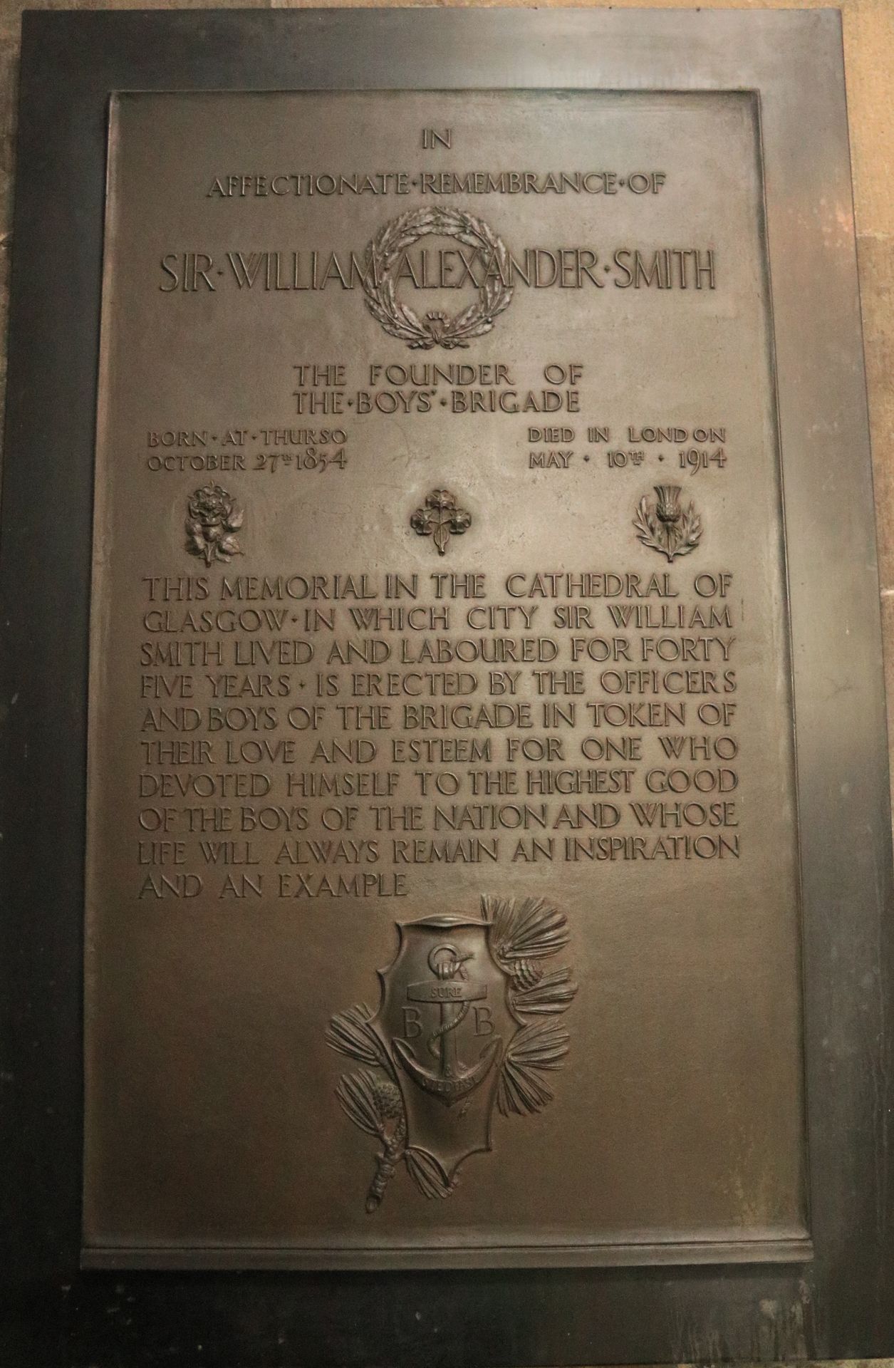 Picture of the heading “The William Smith Museum” at Thurso ----------- Picture of the plaque in Glasgow Cathedral to Sir William.